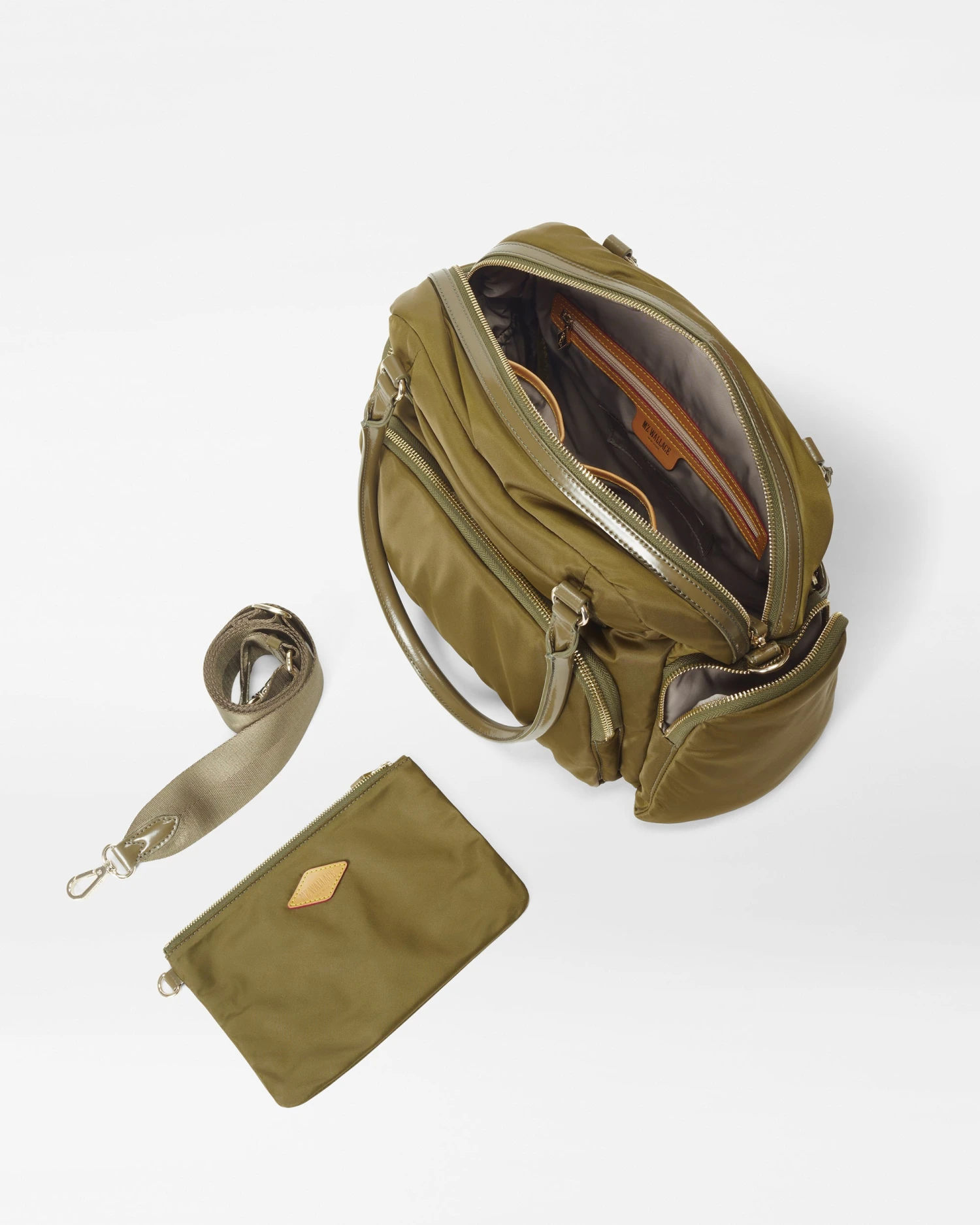 The Chelsea Shoulder is the perfect everywhere bag. Itβs made of 100% recycled nylon and features rolled Italian leather handles, gold hardware, and a cobalt blue interior lining. The exterior has four zip pockets and two slip pockets, and the spacious interior can fit a 14 inch laptop. It also comes with a detachable crossbody strap.